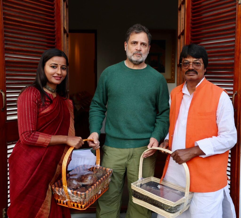 पूर्व मंत्री योगेंद्र साव एवं कांग्रेस की राष्ट्रीय सचिव अंबा प्रसाद ने आज दिल्ली में लोकसभा प्रतिपक्ष नेता राहुल गांधी से मुलाकात की। इस अवसर पर दोनों नेताओं ने उन्हें बड़कागाँव की पावन मिट्टी से उपजे शत-प्रतिशत शुद्ध गुड़ और अलसी (तीसी) भेंट की। यह उपहार मेहनतकश किसानों के पसीने और उनके जल-जंगल-जमीन की रक्षा के संकल्प का प्रतीक के रूप मे बताया —एक ऐसा संघर्ष जिसे पूर्व मंत्री श्री योगेंद्र साव,और पूर्व विधायक सुश्री अम्बा प्रसाद का परिवार वर्षों से मजबूती से लड़ता आया है।