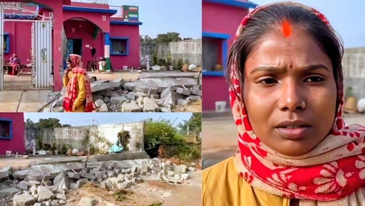 घटना बुधवार देर रात की बताई जा रही है। प्रत्यक्षदर्शियों के अनुसार गादी-चुंगलो गांव निवासी पिंटू मंडल अचानक जेसीबी मशीन लेकर सिरसिया गांव पहुंचा और ससुराल के घर को तोड़ने की धमकी देते हुए चहारदीवारी गिरा दी। शोर सुनकर आसपास के ग्रामीण मौके पर जुटने लगे, लेकिन इससे पहले कि लोग कुछ समझ पाते, आरोपी जेसीबी लेकर वहां से फरार हो गया।