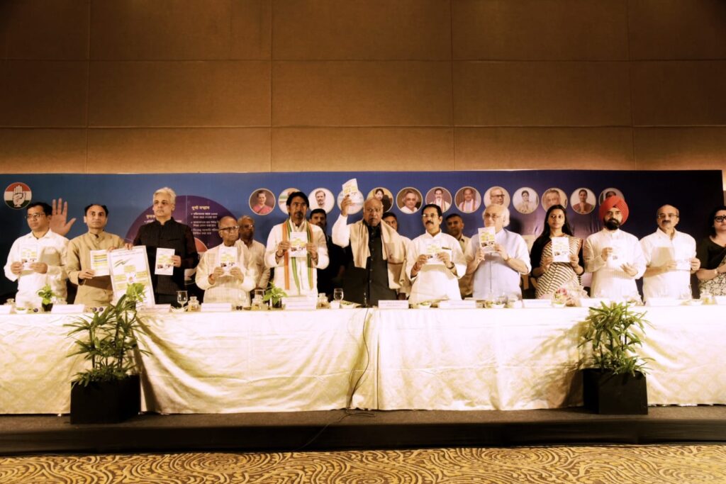 घोषणा पत्र जारी करने के दौरान राष्ट्रीय अध्यक्ष मल्लिकार्जुन खड़गे, महासचिव जयराम रमेश, प्रभारी गुलाम अहमद मीर, प्रदेश अध्यक्ष शुभंकर सरकार एवं अन्य वरिष्ठ नेताओं की उपस्थिति रही।
